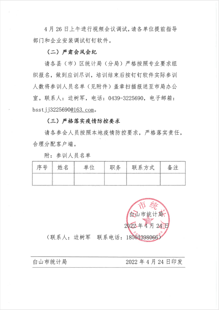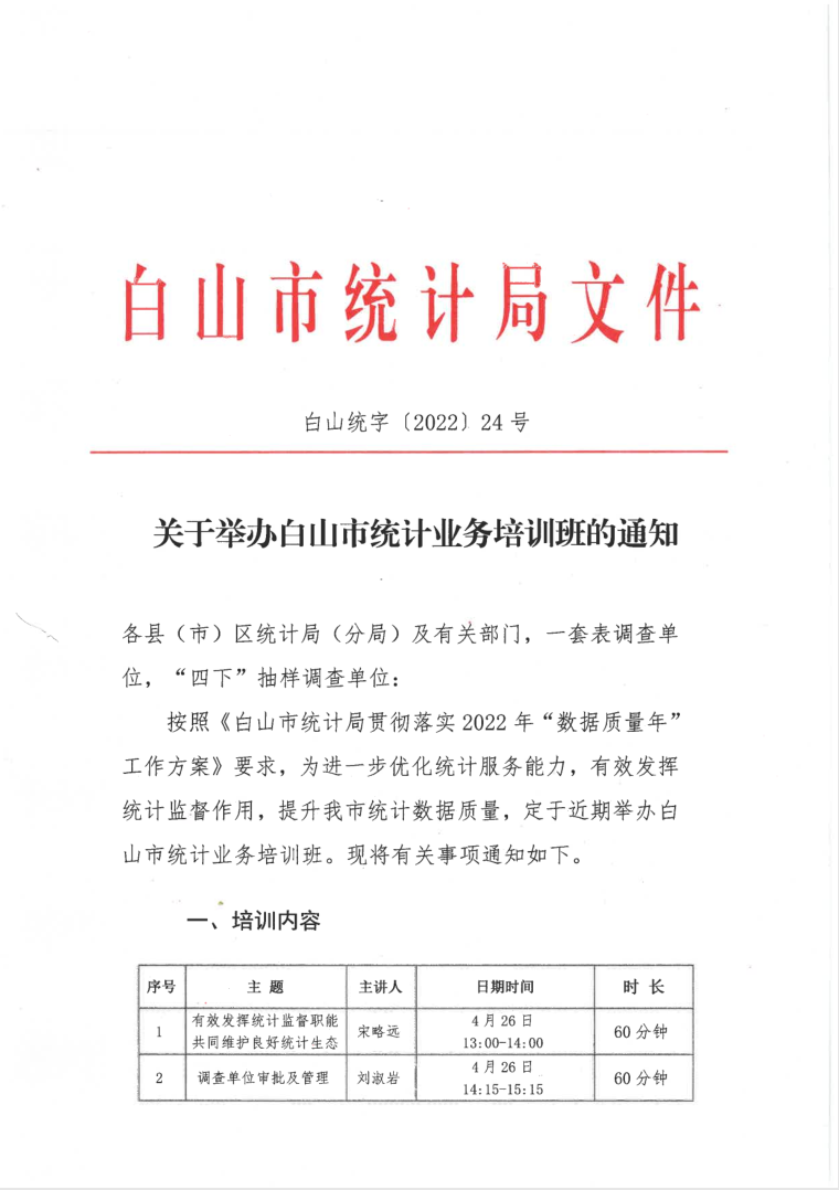 关于举办白山市统计业务培训班通知