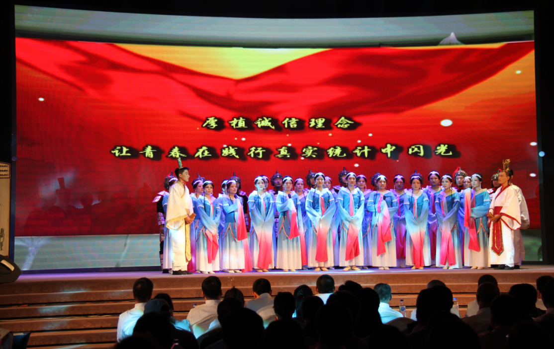 此次文艺汇演活动白山市局高度重视,精心策划,紧紧围绕“喜迎十九大放飞统计梦”主题,结合统计工作实际,认真准备,积极组织协调各科室和县区分局的干部职工,加紧排练。舞台剧《统计历史之变迁》共有36人参加,为了更好的演出效果,同事们在工作之余,反复排练。整个节目采用话外音讲述、舞蹈和合唱相结合的形式,先后描述了先秦时代的统计萌芽,历数秦汉统计法制,舞绎贞观之治统计发展,寄望了现代统计时空。通过灵活的节目形式和强烈的艺术感染力让观众走进统计历史变迁,感受统计历史文化的博大精深。